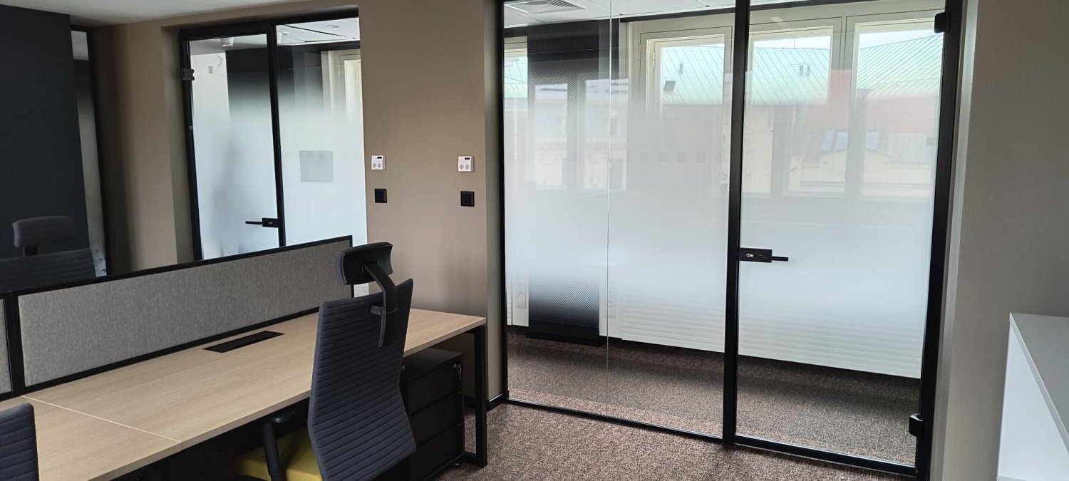 - Doplnění designu a optické oddělení prosklených příček, mobilních stěn a prosklených stěn.