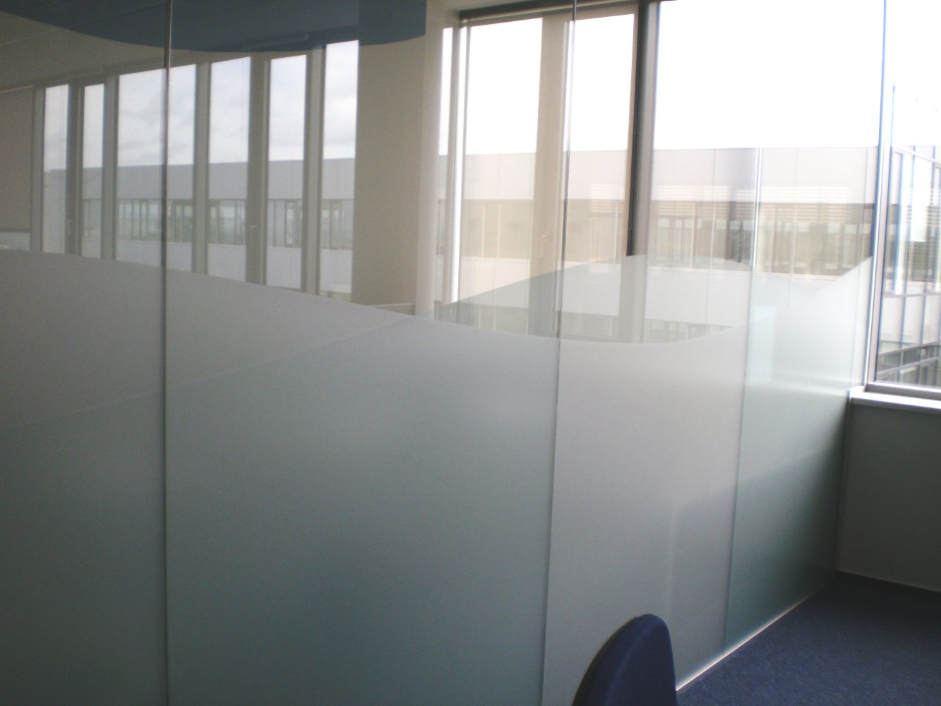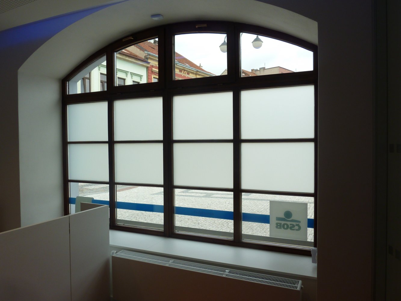 - Celoplošné polepy privátních fólií s efektem pískovaného skla.